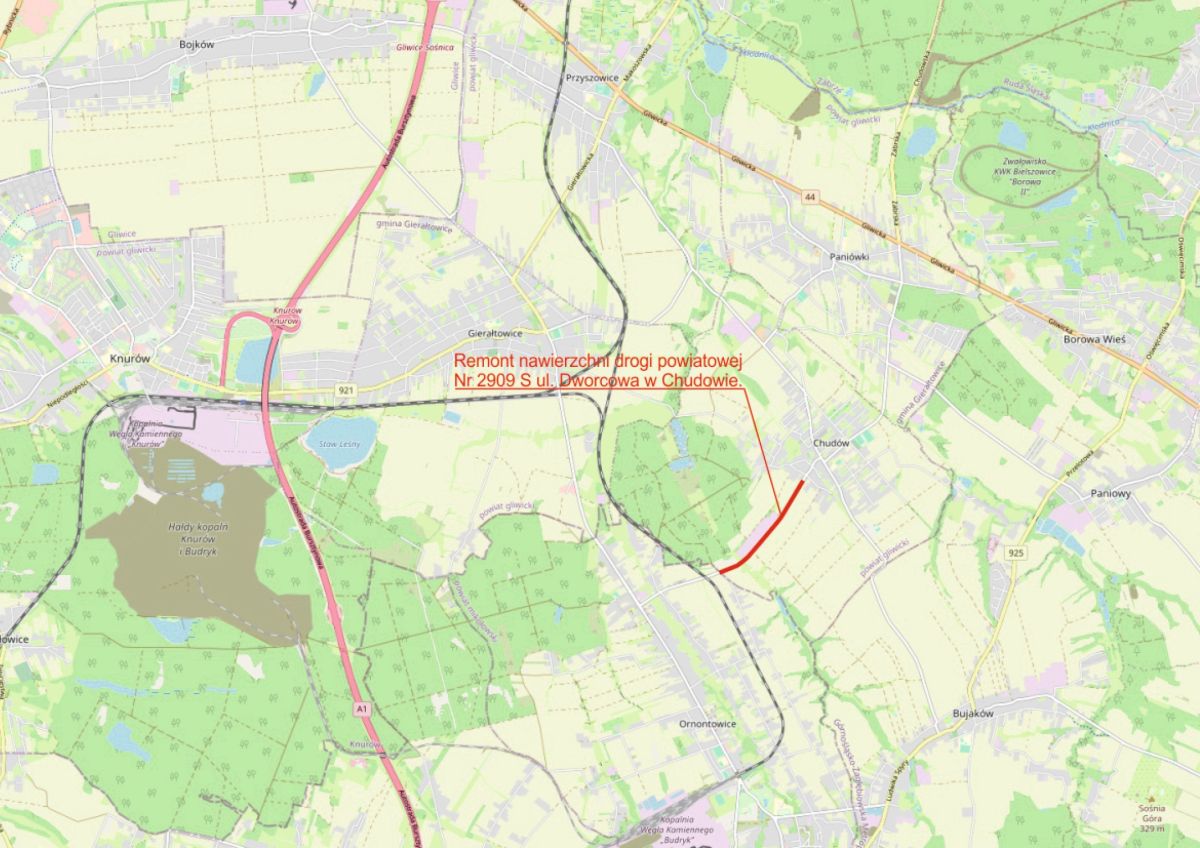 - Chudów ul. Dworcowa(DP nr 2909 S) o długości 1 376 m