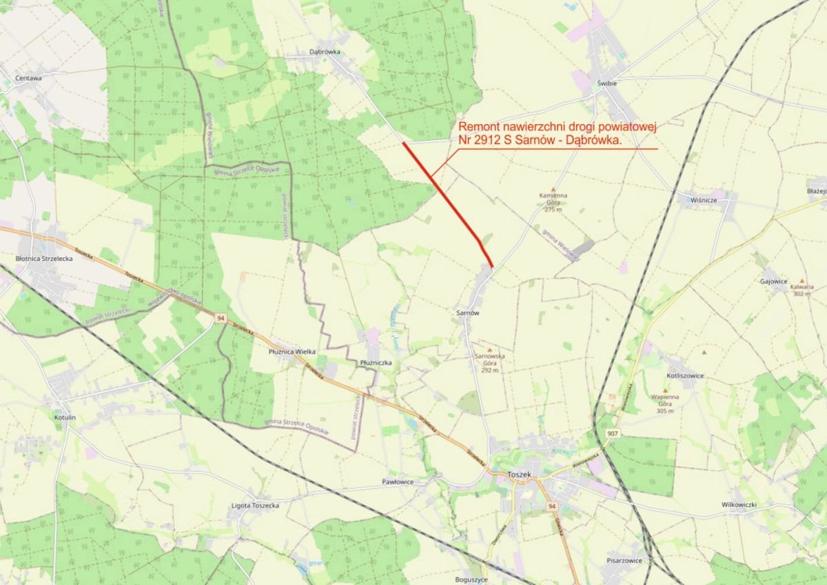 - Dąbrówka – Sarnów(DP nr 2912 S) o długości 2 460 m